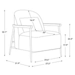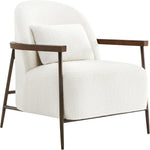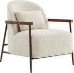 - Your Mid Century Modern Armchair - With its low-slung profile and the striking contrast between the substantial upholstery and sleek, bronze-finished metal frame, this armchair presents a playful yet sturdy design. Solid rubberwood arms further enhance its comfort and durability. Additionally, a complimentary lumbar support pillow is included, catering to diverse seating preferences.