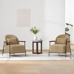 Accent Chair for Living Room, FSC Certified Modern Upholstered Faux Sherpa Fabric Armchair with Metal Frame and Wooden Armrests, Camel