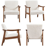 Fabric Accent Chair, Mid-Century Modern Armchair with Solid Wood Legs, Reading Leisure Chair with High Back for Living Room Bedroom Waiting Room,Ivory